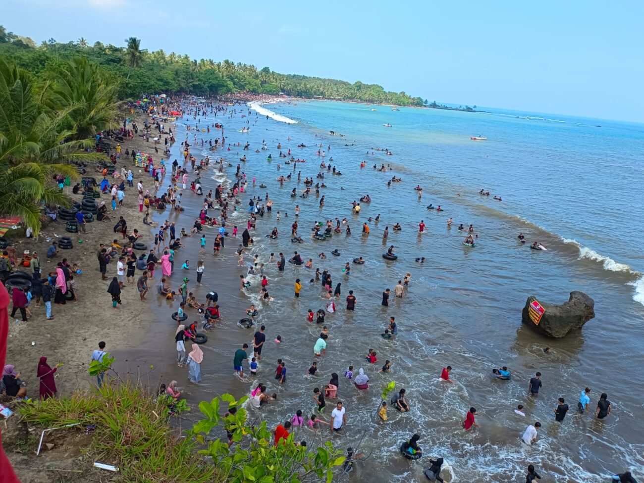 Setelah beristirahat sejenak, kami langsung turun ke pantai. Deburan ombak, pasir putih yang lembut, dan angin sepoi-sepoi mengundang kami untuk berlarian, bermain bola, dan mengabadikan momen bersama. Kami juga mencoba berenang di laut yang cukup tenang, meski agak kelelahan setelah perjalanan panjang.